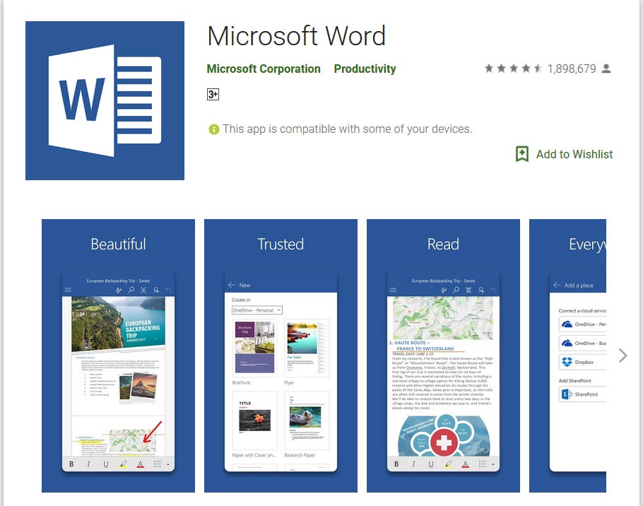 تعداد دانلود مایکروسافت ورد در فروشگاه گوگل از مرز 500 میلیون بار گذشت.