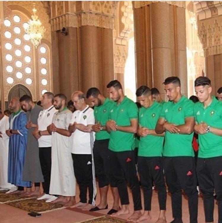 بازیکنان تیم ملی مراکش در صف نماز جمعه حاضر شدند.