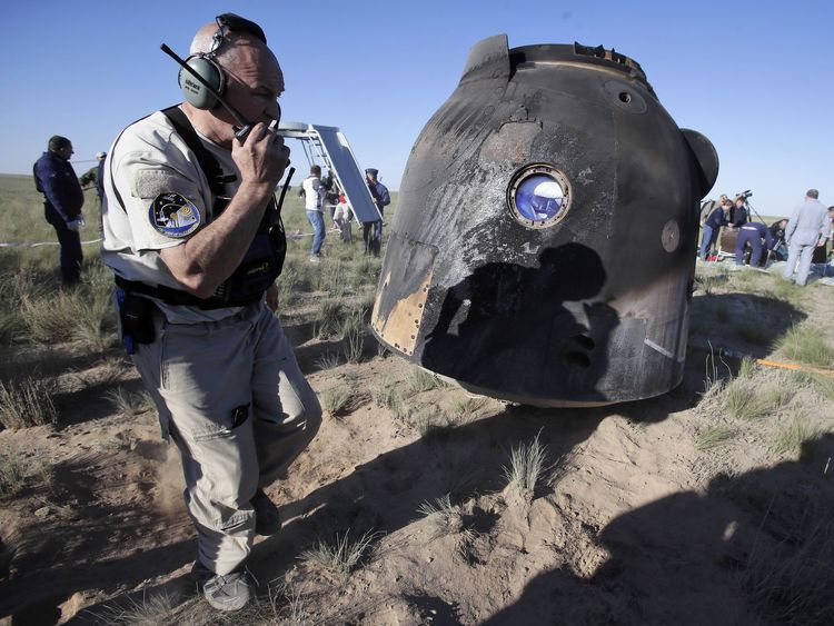 کپسول فضاپیمای سایوز، حامل فضانوردان آمریکایی، ژاپنی و روسی که در ایستگاه فضایی بین‌المللی به سر می‌برد در نزدیکی شهر ژزکازگان قزاقستان پس از 168 روز به زمین نشست.