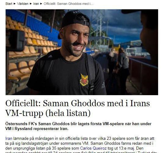 به گزارش جی پلاس، پس از اعلام لیست نهایی ایران برای جام جهانی رسانه های سوئدی حضور سامان قدوس در این فهرست نهایی را بازتاب دادند.
