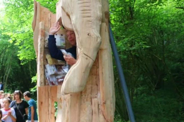 یک هنرمند فرانسوی خودش را برای مدت ۷ روز داخل یک مجسمه چوبی، الهام گرفته شده از پیکرهای متعلق به عصر پارینهسنگی نوین حبس کرد.
