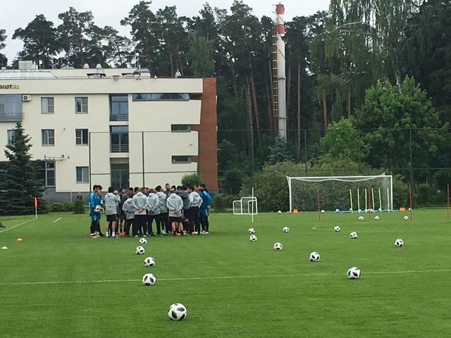 به گزارش جی پلاس، تمرین تیم ملی فوتبال ایران عصر امروز از ساعت ۱۸:۳۰ در کمپ لوکوموتیو مسکو برگزار شد. پیش از این که بازیکنان به محل تمرین بیایند جلسه‌ای با حضور اعضای کادر فنی و بازیکنان در ساختمان محل اسکان تیم برگزار شد. رشید مظاهری هم که زودتر از سایرین به محل تمرین آمده بود تا در میان خبرنگاران صحبت کند، به ساختمان اسکان تیم بازگشت.