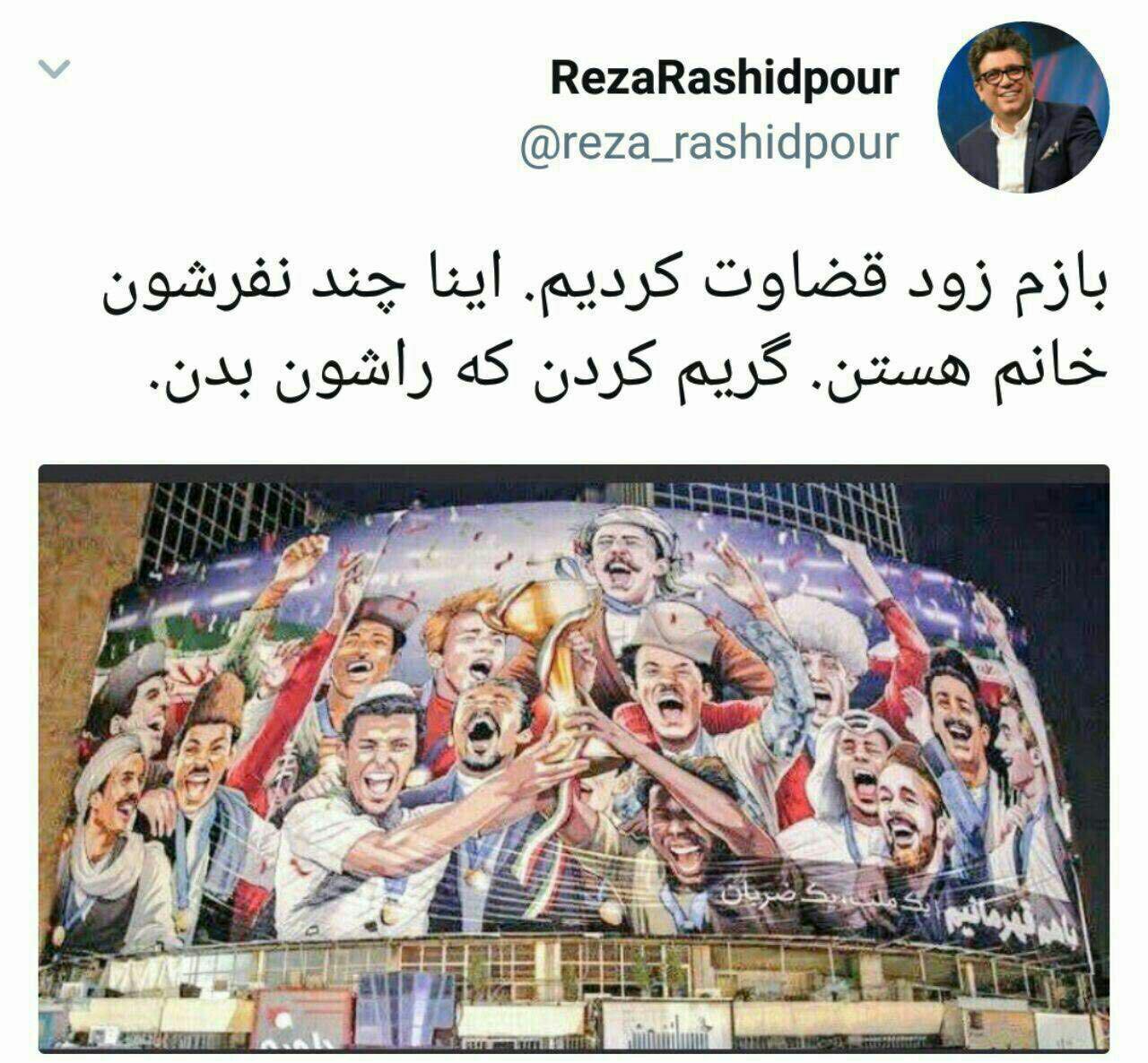 به گزارش جی پلاس، رضا رشیدپور با ارسال پستی در صفحه اینستاگرام خود نسبت به بیلبور جنجالی حمایت از تیم ملی در میدان ولیعصر(عج) واکنش نشان داد.