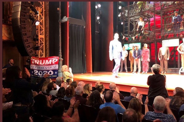 حالا پس از گذشت چند روز از این اتفاقات، در اجرای نمایش «داستانی از برانکس» به کارگردانی رابرت دنیرو و جری زکس برنده چهار جایزه تونی، یکی از طرفداران ترامپ با قرار دادن پرچمی جلوی صحنه نمایش که روی آن نوشته بود «آمریکا را بزرگ نگه دار» و «ترامپ ۲۰۲۰» موجب برهم خوردن نمایش در لحظات پایانی آن شد.