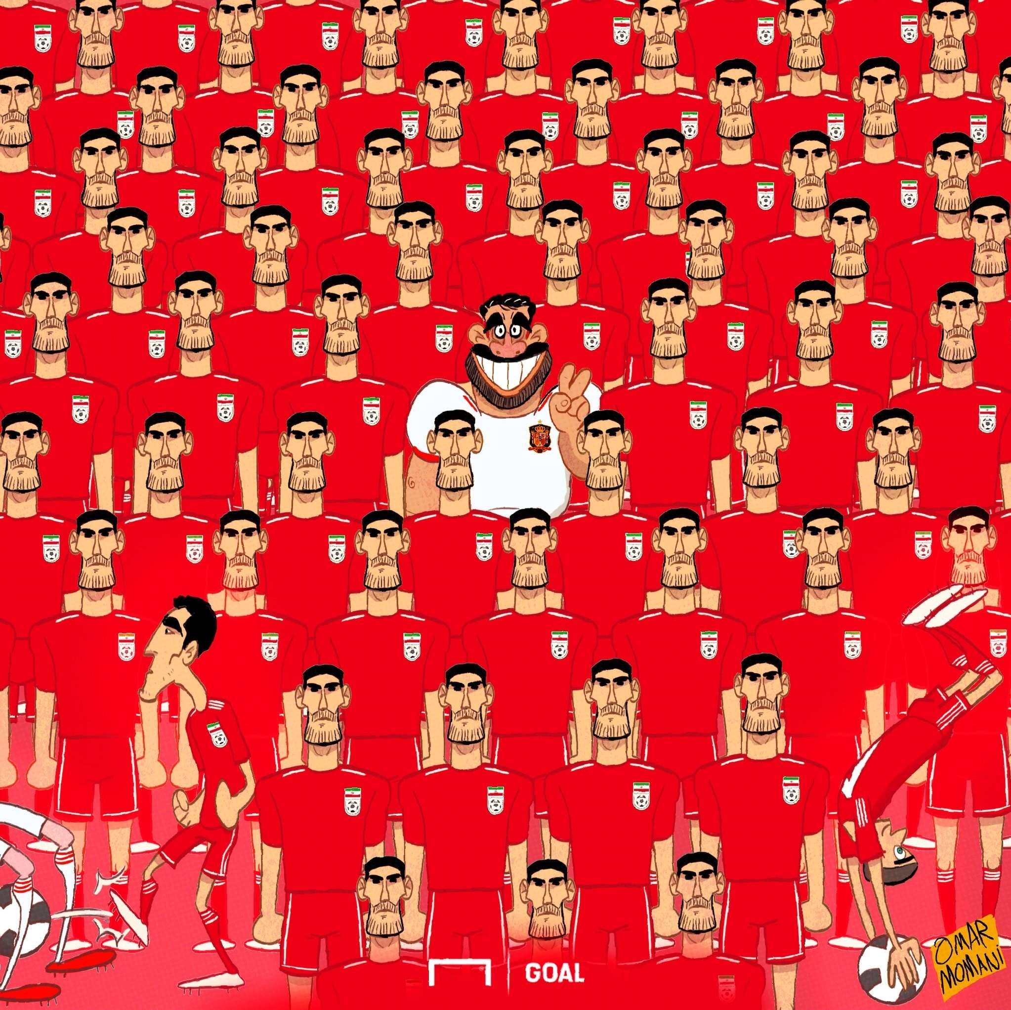 به گزارش جی پلاس، عمر مومنی، کاریکاتوریست معروف سایت «گل»، بازی شب گذشته (چهارشنبه) تیمهای ملی فوتبال ایران و اسپانیا در گروه B جام جهانی 2018 روسیه که با برتری یک بر صفر شاگردان فرناندو هیرو پایان یافت را سوژه جدید خود قرار داد.