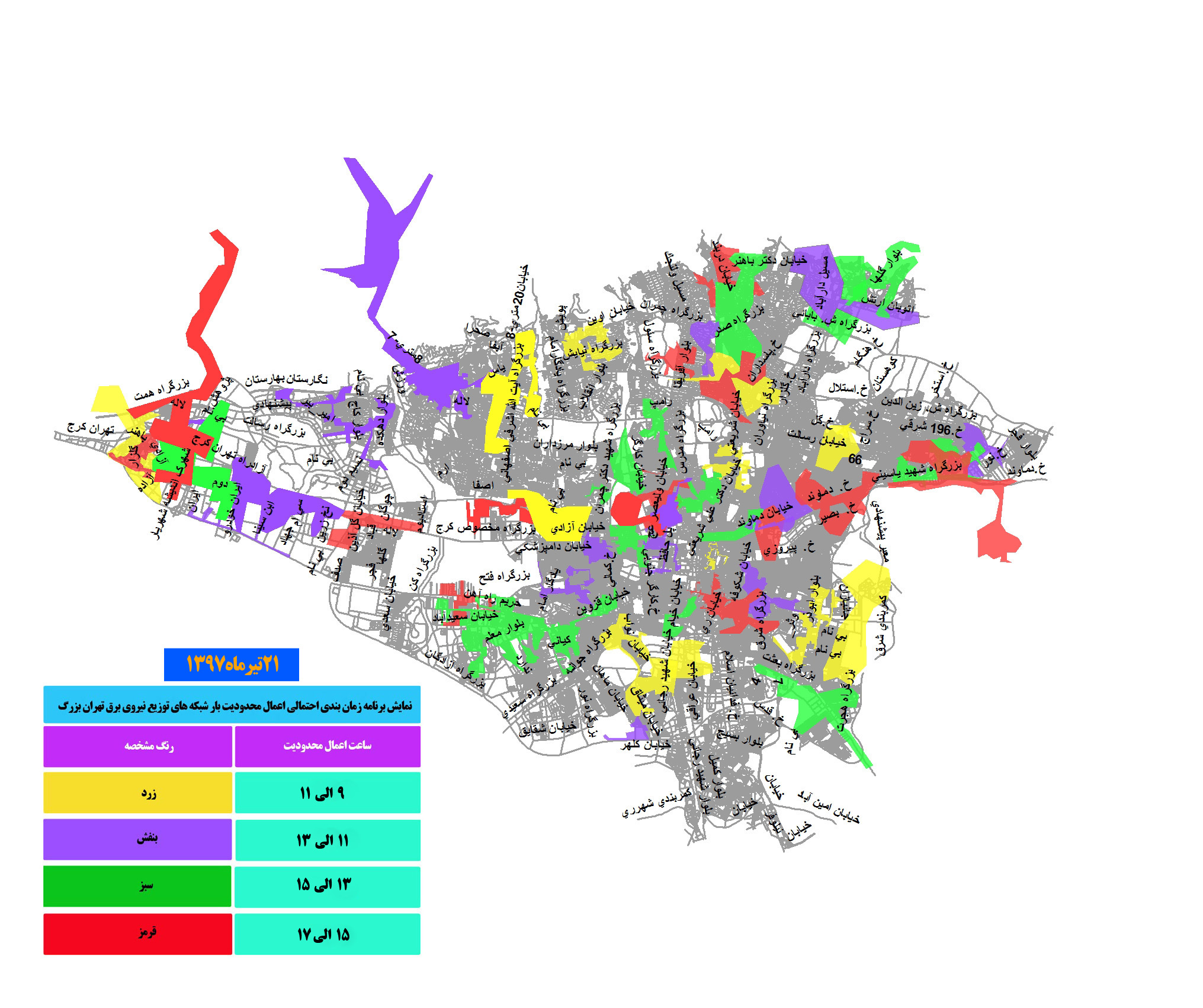 شرکت توزیع برق استان تهران، برنامه قطع برق تهران برای امروز پنجشنبه ۲۱ تیرماه را اعلام کرد.