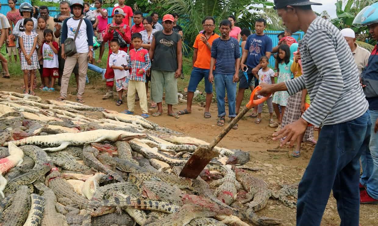 کشته شدن یک نفر توسط یک تمساح در روستایی در اندونزی منجر شد اهالی آن روستا دست به قتل عام تمساحها بزنند.
