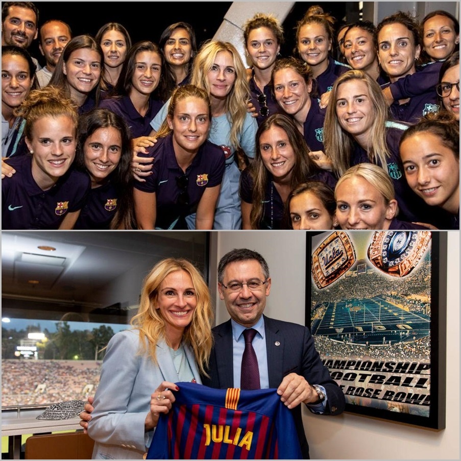 جولیا رابرتز هنرپیشه مطرح هالیوود با ژوزف بارتومئو مدیر باشگاه و تیم بانوان بارسلونا در استادیوم Rose Bowl آمریکا ملاقات گرمی داشت.