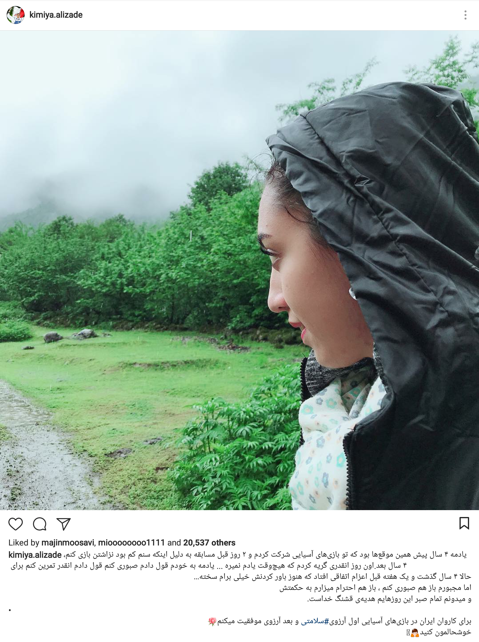 کیمیا علیزاده پست جدیدی در اینستاگرامش منتشر کرد.