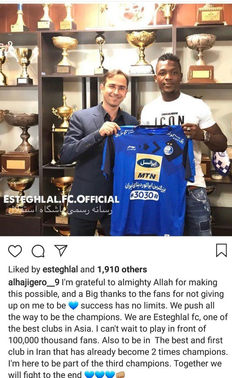 بازیکن جدید استقلال پستی در اینستاگرامش مشخص کرد.