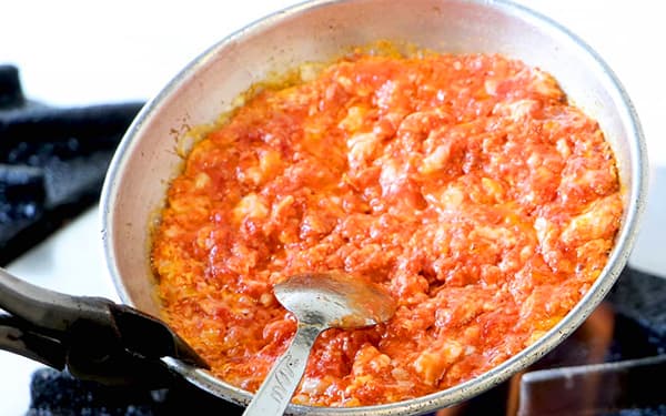 مهم ترین دلیل خوشمزه شدن املت های قهوه خانه ای سرخ کردن رب گوجه فرنگی است. رب گوجه فرنگی را به خوبی با حرارت بالا تفت می دهیم تا خوشرنگ شود و طعم و بوی خامی آن به طور کامل گرفته شود.