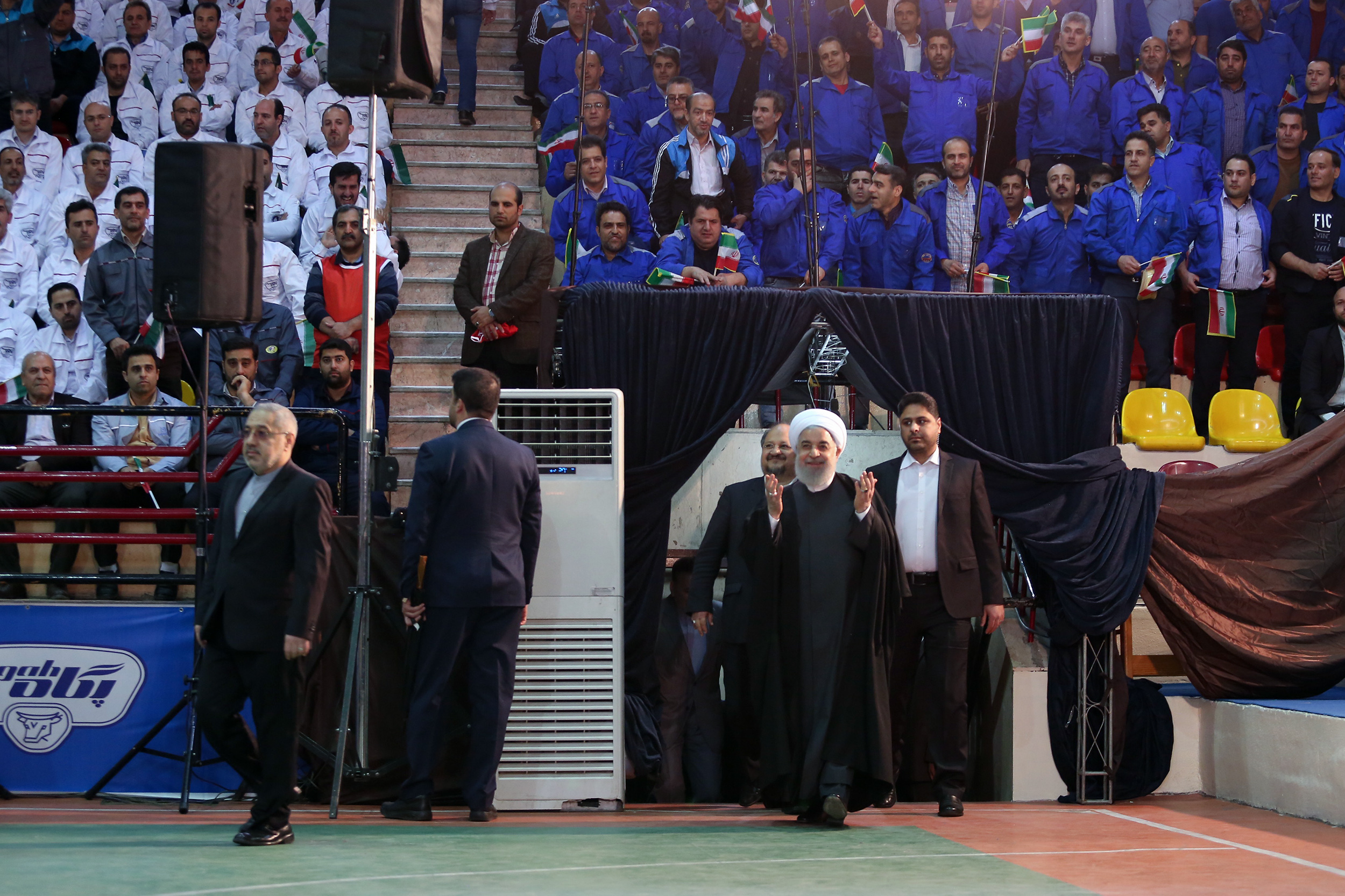 دکتر روحانی در این مراسم که در مجموعه ورزشی شهید معتمدی انجام شد، با تأکید بر اینکه دولت، کارفرمایان، کارگران، کارآفرینان و بخشهای مختلف تولیدی جامعه امروز بار سنگینتری بر دوش دارند، ادامه داد: آمریکا از طریق اعمال تحریمهای ظالمانه به دنبال کاهش درآمد ارزی کشور است و منبع بزرگ درآمد ارزی همواره فروش نفت، میعانات و برخی صنایع وابسته به تولید نفت و گاز بوده است.