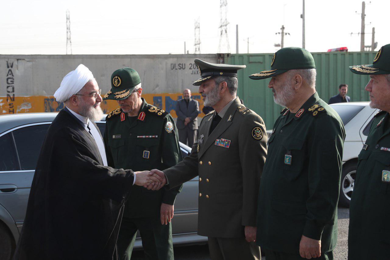 مراسم ویژه رژه نیروهای مسلح جمهوری اسلامی ایران صبح یکشنبه و همزمان با آغاز هفته دفاع مقدس با حضور حجت الاسلام و المسلمین دکتر حسن روحانی رئیس جمهوری در جوار حرم حضرت امام خمینی (ره)بنیانگذار کبیر جمهوری اسلامی ایران برگزار شد.
