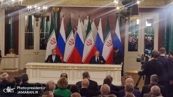 به گزارش جماران؛ توافقنامه جامع راهبردی ایران و روسیه به امضای روسای جمهوری اسلامی ایران و جمهوری فدراتیو روسیه رسید.