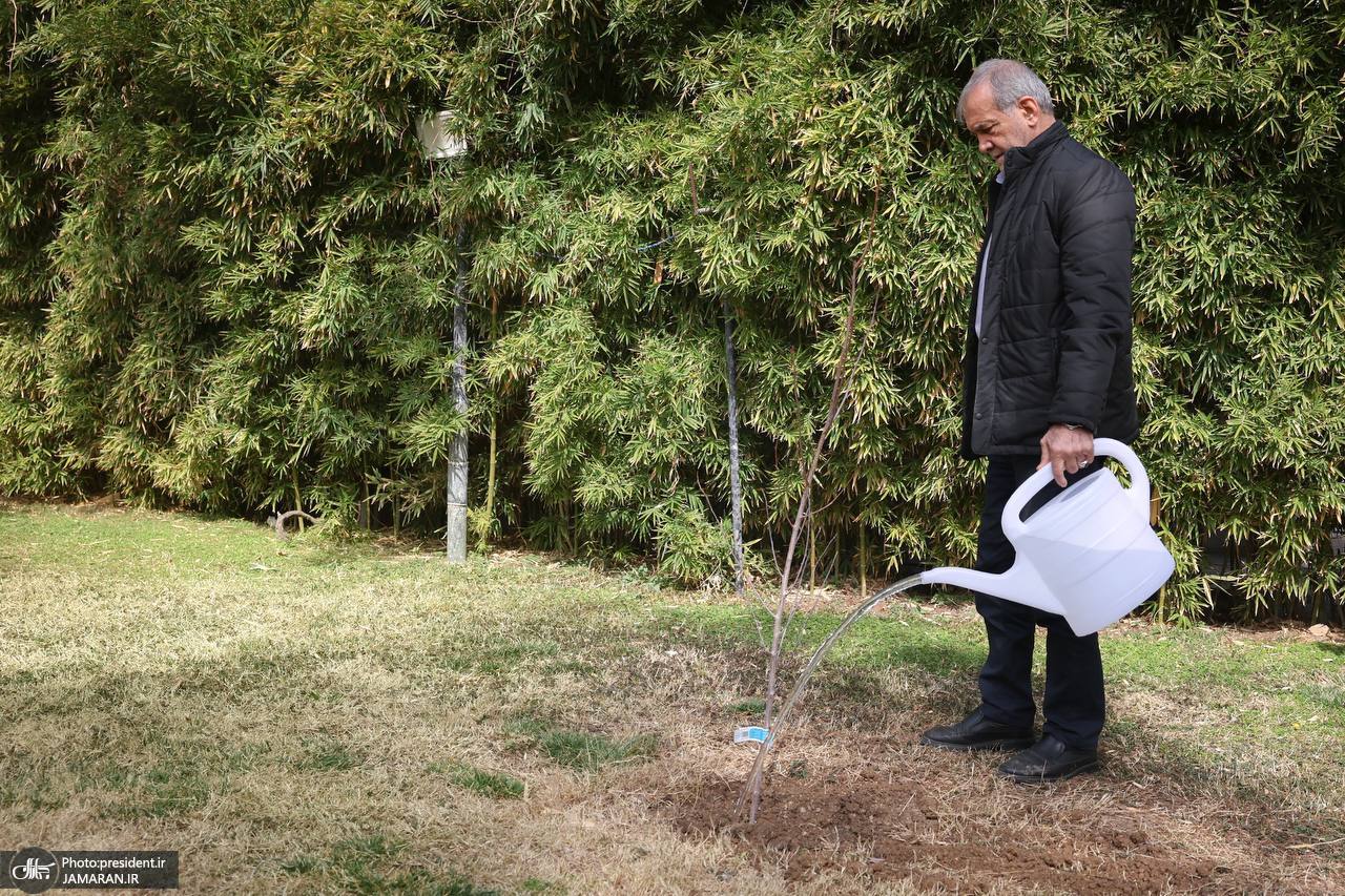 پزشکیان رییس جمهوری کشورمان در روز درختکاری 3 نهال کاشت.