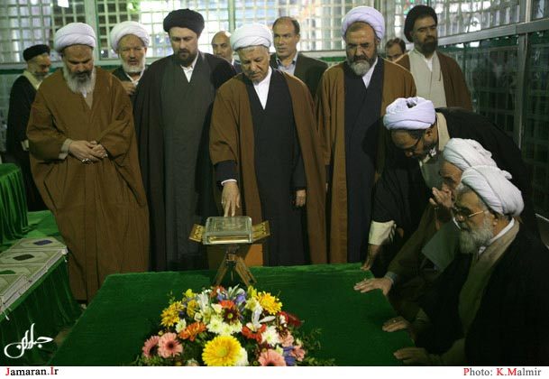 صبح امروز جمعی از اعضای مجلس خبرگان رهبری، با حضور در حرم مطهر امام خمینی، در معیت آیت الله هاشمی رفسنجانی رییس پیشین این مجلس و حجت الاسلام و المسلمین سید حسن خمینی یادگار گرامی امام، ضمن نثار تاج گل به پیشگاه رهبر کبیر انقلاب اسلامی با آرمان های بنیانگذار نظام مقدس جمهوری اسلامی تجدید میثاق کردند.