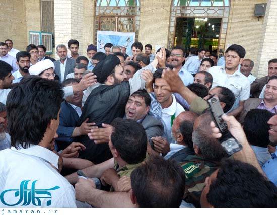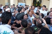 حجت الاسلام والمسلمین حاج سید علی خمینی در جمع پرشور مردم شهرستان نوق از توابع استان کرمان به سخنرانی پرداخت.!P4!