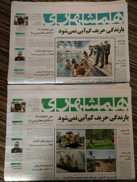 پی نوشت: بر اساس عکس منتشر شده در فضای مجازی، روزنامه همشهری در تهران با عکس قالیباف و در شهرستانها با عکسی دیگر منتشر شده است.