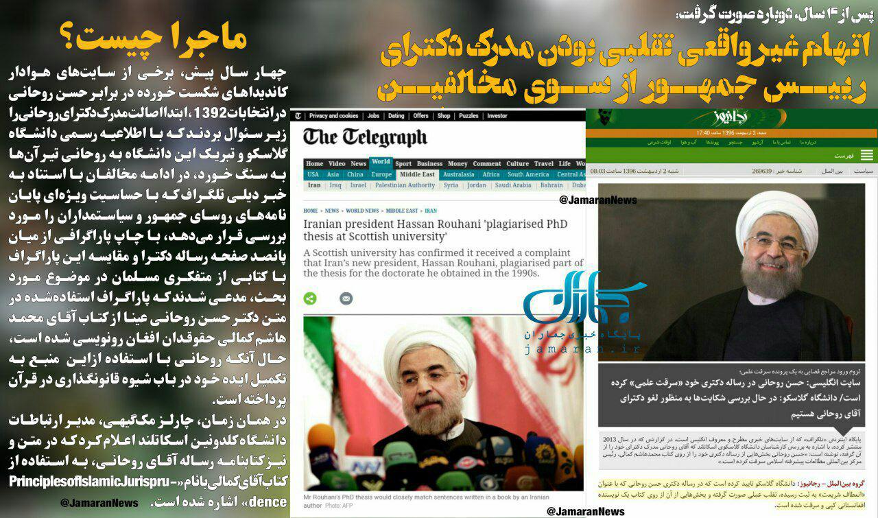 امروز یکی از سایت های منتقد دولت، انتقادی تکراری را در خصوص مدرک دکترای دکتر حسن روحانی منتشر کرد.