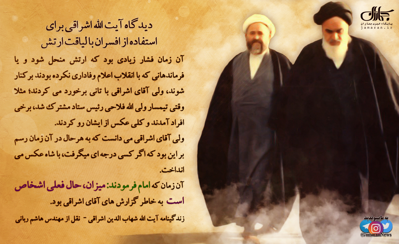 پوستر | دیدگاه آیت الله اشراقی برای استفاده از افسران با لیاقت ارتش