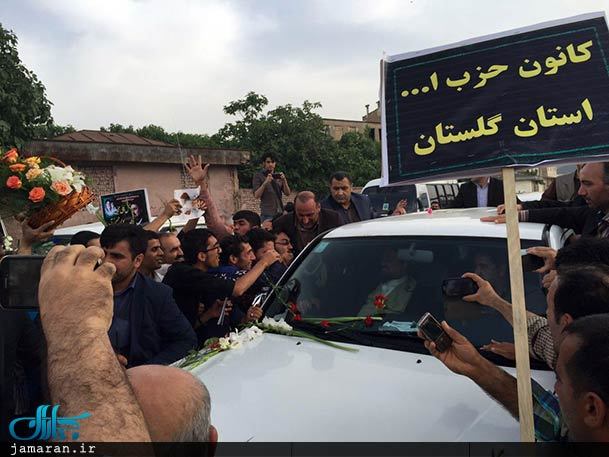 در مسیر حرکت سید حسن خمینی، کانون حزب الله گلستان ماشین حامل ایشان را گلباران کرد.