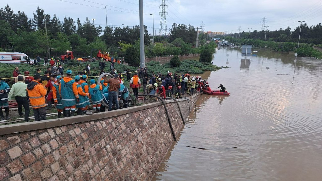 زیرگذر مصلی نیز به دلیل سیلاب مسدود است.