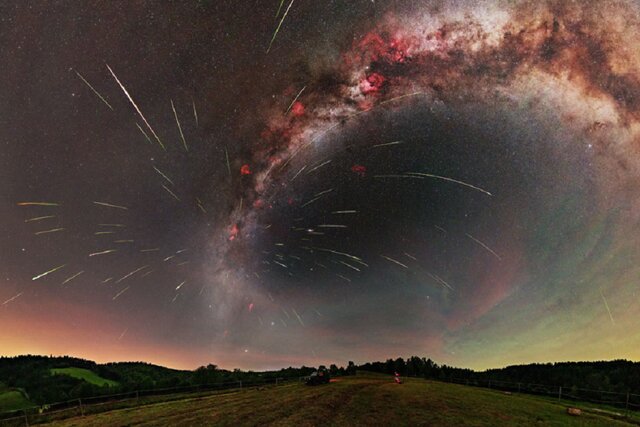 این عکس ترکیبی که طی ۶ شب گرفته شده و شامل بیش از ۱۰۰ شهابسنگ از بارش شهابی برساوشی در اوت ۲۰۲۴ است، شهابسنگهای درخشان بسیاری را نشان میدهد که بر فراز «کوههای بیشچاد»(Bieszczady Mountains) در لهستان دیده میشوند.