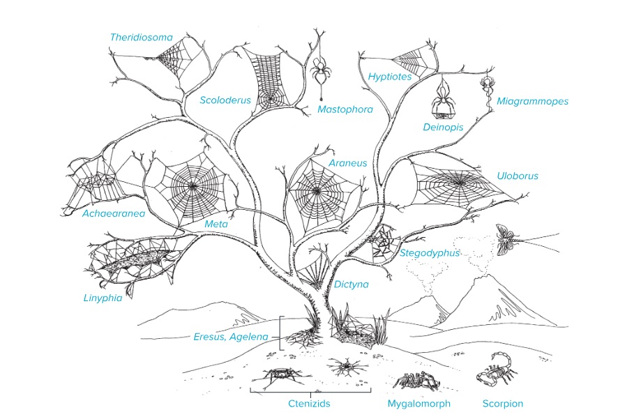 تارهای شبکهای عنکبوتها ویژگی مشترکی دارند به طوری که طرحهای قدیمی آن، از دایرهای مرکزی تشکیل شده که دایرههای بعدی هم به طور منظم در اطراف آن قرار میگیرند. دانشمندان به دنبال آن هستند تا تنوع بافت تارها را در عنکبوتها طبقهبندی کنند.