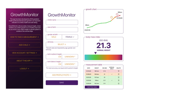 اکنون یک گروه بینرشتهای به رهبری پروفسور هلن استور در دانشگاه کوئین مری لندن، یک اپلیکیشن کاربرپسند به نام «GrowthMonitor» برای انجام این کار توسعه داده است. آزمایش های انجام شده بر روی این اپلیکیشن نشان می دهد که دادههای قد اندازهگیریشده توسط این برنامه در مقایسه با اندازهگیریهای بالینی استاندارد «سنجش قد»، بسیار دقیق است.