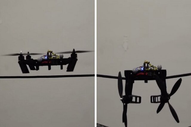 دانشمندان یک پهپاد جدید ساختهاند که در میانه پرواز تغییر شکل میدهد و میتواند تعادل خود را روی خطوط برق حفظ کند.