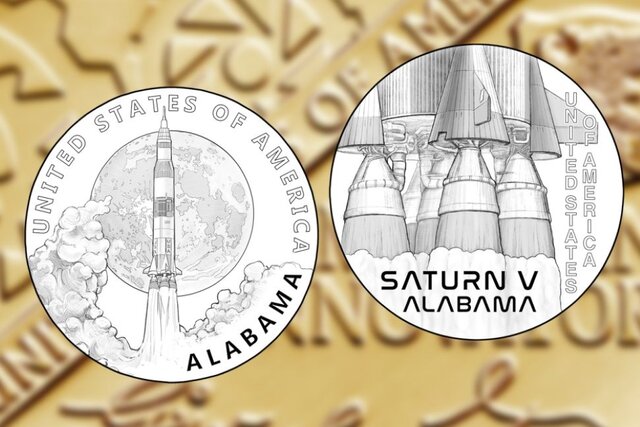 پیشران موشک سترن ۵(Saturn V) ناسا نیز که قرار است تصویر آن در پشت یک سکه یک دلاری نقش ببندد، نماینده ایالت آلاباما خواهد بود. کمیسیون هنرهای زیبای آمریکا(CFA) و کمیته مشورتی شهروندی ضرب سکه(CCAC) به طور جداگانه طرحهای برگزیده را بررسی کردند و توصیههای متفاوتی را به مدیر ضرابخانه ارائه دادند، اما در نهایت تصمیم برای انتخاب طرح با مدیر ضرابخانه است.
