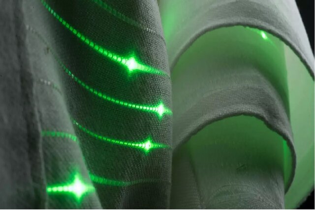 وی ادامه داد: برای مثال اگر قرار است روی لباسهای ورزشی قطعات الکترونیکی قرار داده شود، بینیاز از سیم، این پارچهها میتوانند جریان را از منبع تامین انرژی (باتری) به قطعه مورد نظر (نظیر لامپ) برسانند. بنابراین این پارچهها برای تولید باتری و الکترود منعطف نیز قابل استفاده هستند. یکی از ویژگیهای این منسوجات، خواص ضد امواج رادیویی آن است که میتواند به منظور محافظت از کاربر در برابر امواج استفاده شود.