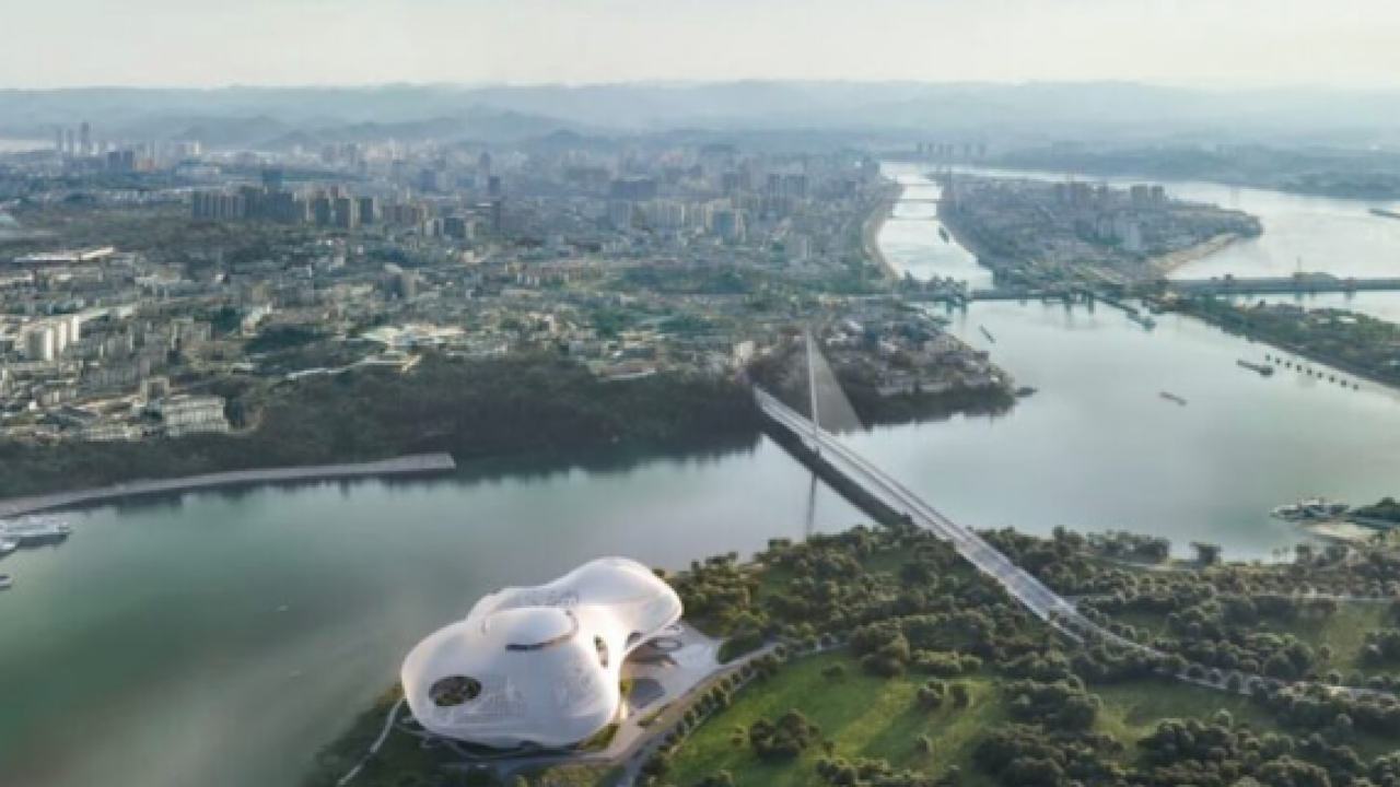 ساختمان جدید و بزرگ آمفی تئاتر ییچانگ شبیه به نوعی سفینه فضایی عجیب و غریب فرود آمده در چین است.