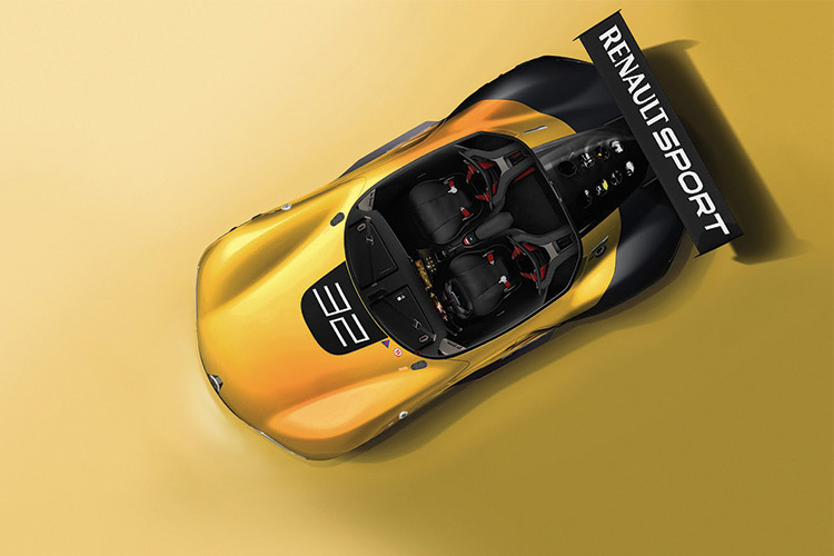 در نمای روبهرو، خودروی مذکور شبیه به رنواسپرت R.S. 01 و کانسپت آلپین ویژن گرن توریسمو است و به نظر میرسد همهی آنچه شما از یک خودروی مسابقهای نیاز دارید، در خود دارد؛ یک فضای داخلی مینیمالیستی، دو صندلی، بدون سقف، یک پیشرانهی نصبشده در وسط و آئرودینامیک کاربردی.