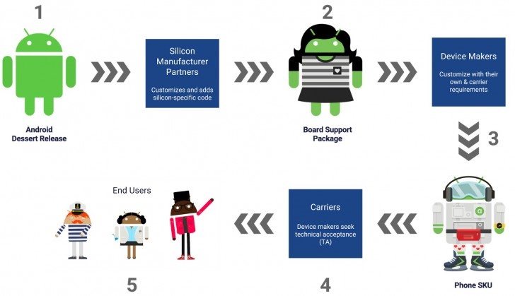 پیش‌تر هر بخش از VI باید توسط چارچوب سیستم‌عامل اندروید دوباره‌کاری می‌شد که این مرحله حذف‌شده است، هرچند سازنده گوشی هنوز می‌تواند فیچرهای خود را روی آپدیت‌ها اعمال کند.