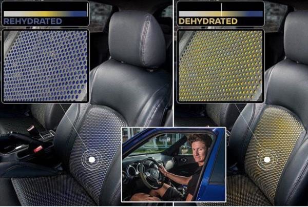 آنها این پوشش را برای صندلی های جلو به کار می برند تا میزان تعریق کاربر را بسنجند. هنگامیکه کاربر دچار کم آبی شود این پوشش به رنگ زرد در می آید و در حالتی که آب بدن کاربر کافی باشد، رنگ آن آبی می شود.