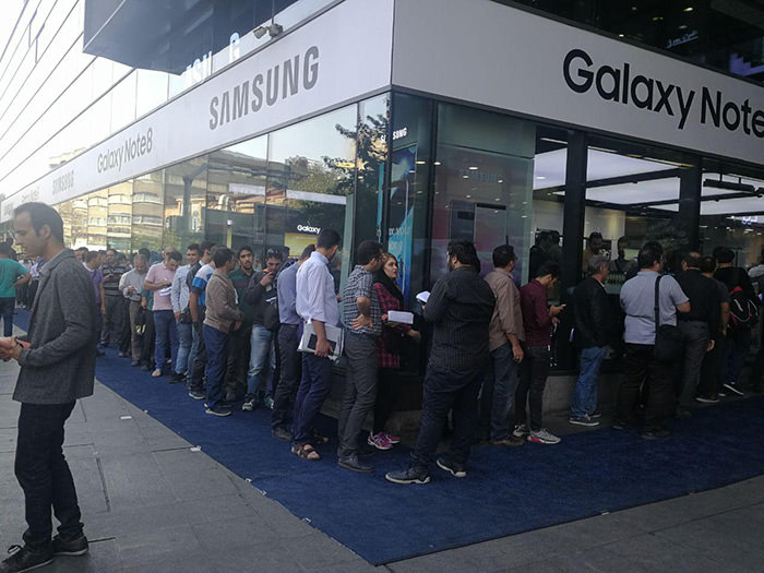 سامسونگ گلکسی نوت 8 را از امروز به بازار ایران عرضه کرده است و از اوایل صبح مردم برای خرید این گوشی جلوی فروشگاه سامسونگ صف کشیدهاند.