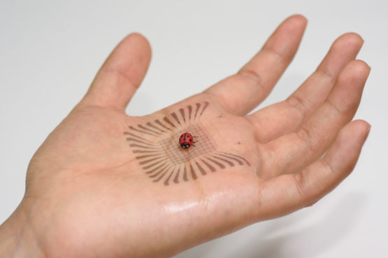 تولید مدارهای پلیمری و قابل ارتجاع که مجهز به حسگرهای لمسی برای تشخیص اثرانگشت یک کفشدوزک مصنوعی است، از جمله آزمایشهایی است که محققان انجام دادهاند. با موفقیت این آزمایش اولیه، محققان در مراحل بعدی و کاربردیتر، از روشی پیشرفتهتر برای تولید وسایل الکترونیک قابل انعطاف و قابل ارتجاع در حجم وسیع استفاده کردهاند تا بتوانند این تولیدات را به مرحله تجاریسازی برسانند.