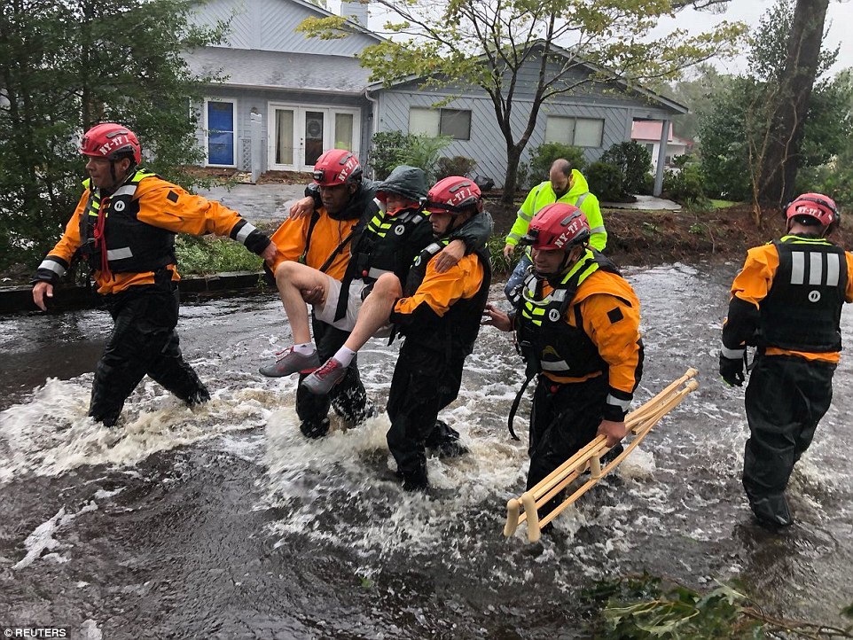 امدادگران موفق شدند ده ها نفر را که در هتلی گرفتار شده بودند نجات دهند و به دستور مقامات بیش از یک و نیم میلیون نفر از ساکنان کارولینای جنوبی و شمالی مجبور شده اند فوری خانه هایشان را ترک کنند.