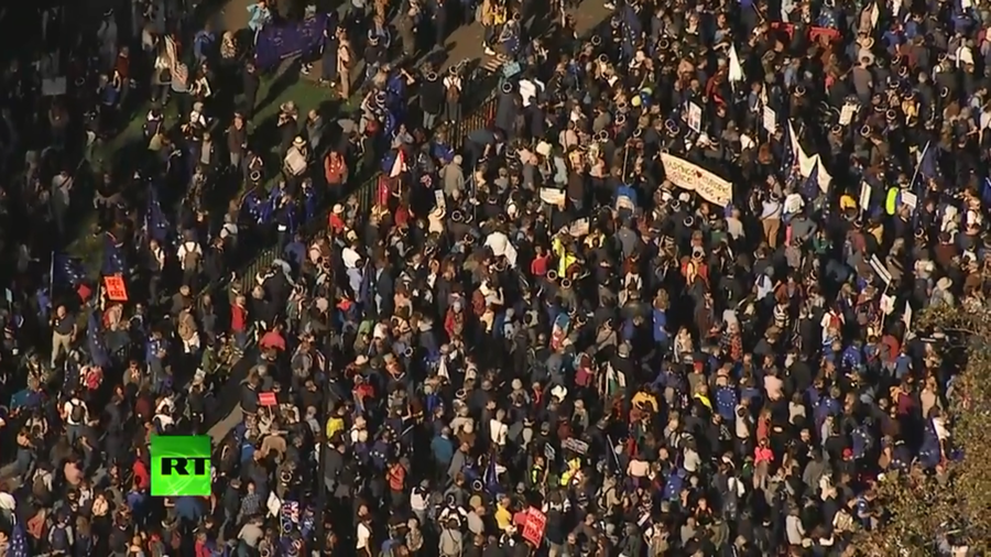 این تظاهرات را گروه های مخالف خروج انگلیس از اتحادیه اروپا به راه انداخته اند.