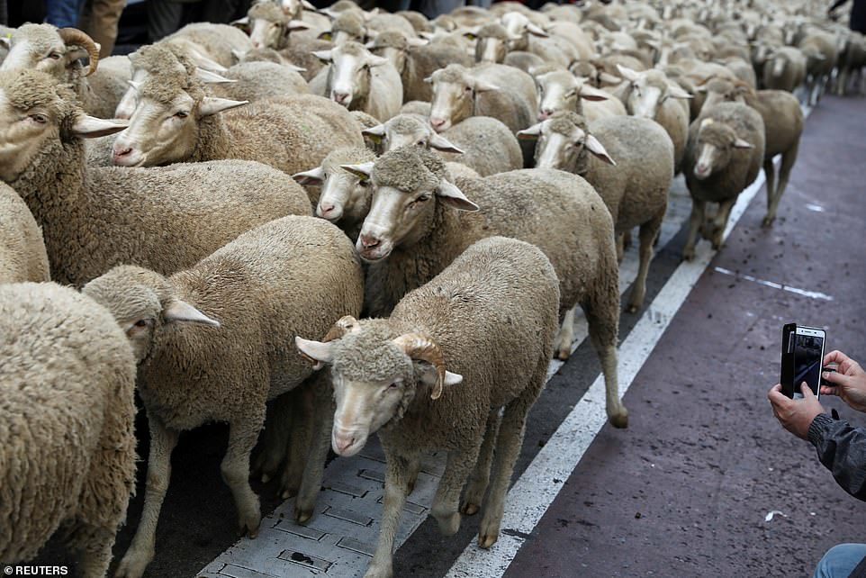 1550 گوسفند و 80 بز از استان «لئون» در شمال غرب اسپانیا همراه با سگ ها و سوارکاران با صدای نی انبان و رقص محلی از مادرید گذشتند. در مجموع، این گله گوسفند در حدود 4 ساعت در مرکز پایتخت اسپانیا حضور داشت و پیش از این نیز حدود یک ماه طول کشیده بود تا از لئون از طریق شهرهای «والنسیا»، «وایادولید» و «سویا» به پایتخت برسد.