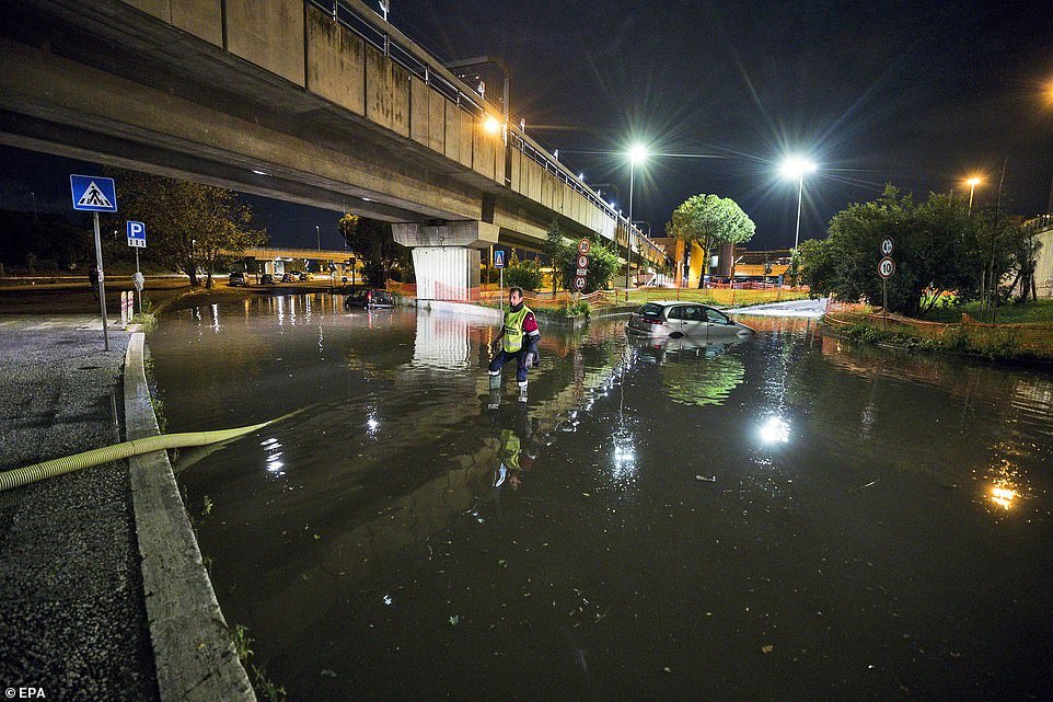 در نتیجه جاری شدن سیل در رم ، 6 ایستگاه مترو در شرق شهر بسته شد. بسیاری از خودروها در میان تکه های یخ گیر کردند و مسافران در داخل خودروها به تله افتادند.