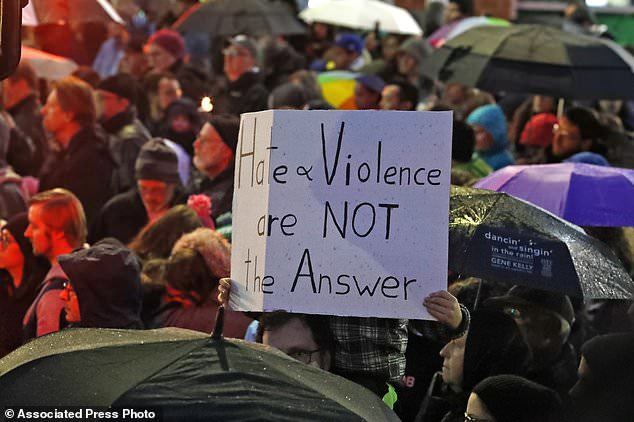 شماری از آمریکایی ها در همدردی با خانواده های قربانیان این حادثه در خیابان های اطراف کنیسه تجمع کرده اند.