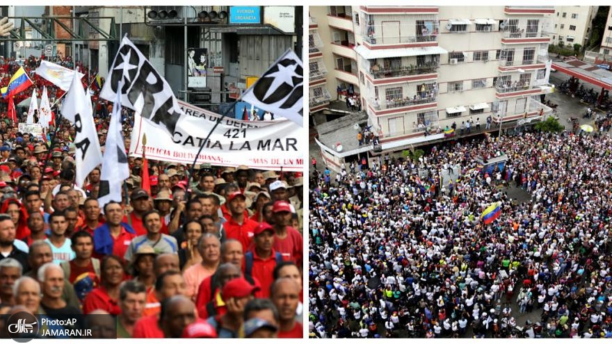 تصاویر منتشر شده در رسانه های جمعی نشانگر حضور پررنگ تر هواداران سرخ پوش نیکلاس مادورو، رئیس جمهور ونزوئلا در خیابان های مرکزی کاراکاس به نسبت طرفداران سفیدپوش خوان گوایدو، رئیس مجلس ملی و رهبر اپوزیسیون است.