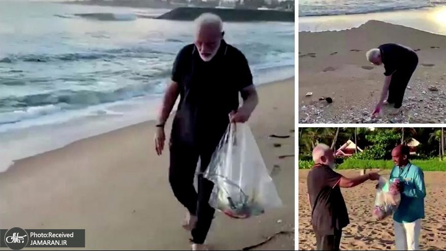 «نارندرا مودی» نخست وزیر هند ویدئوی کوتاهی در حساب کاربری خود در توئیتر منتشر کرد که او را در حال جمع آوری زباله های کنار ساحل جزیره «ماهابالی پورام» نشان می دهد. وی این کار را پیش از ملاقات با رئیس جمهور چین انجام داد.