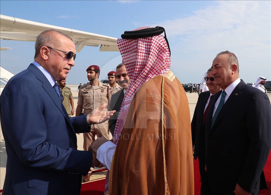 «رجب طیب اردوغان» رئیس جمهور ترکیه امروز دوشنبه در راس هیئتی وارد فرودگاه بین المللی شهر دوحه، پایتخت قطر شد و مورد استقبال «خالد بن محمد العطیه» وزیر دفاع کشور و فکرت اوزر سفیر ترکیه در دوحه قرار گرفت.