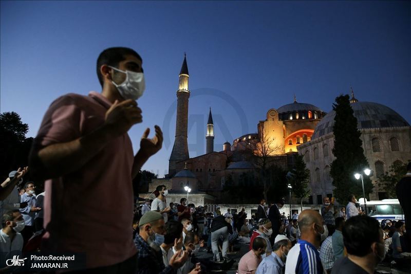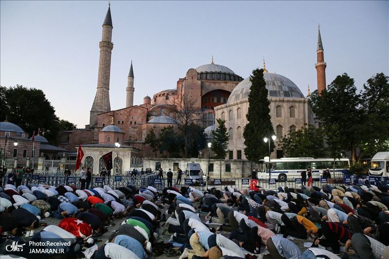 به گزارش جماران، پس از تبدیل شدن موزه ایاصوفیه به مسجد در استانبول با فرمان «رجب طیب اردوغان» رئیس جمهور ترکیه، صدای اذان از این مسجد پخش شد و ده ها نمازگزار نماز مغرب را در محوطه اطراف آن به جماعت برگزار کردند.