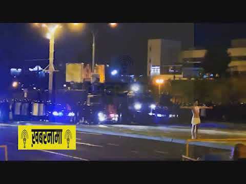 برخی در مقابل پلیس ضد شورش زانو می زنند و از آنها می خواهند که شلیک نکنند.
