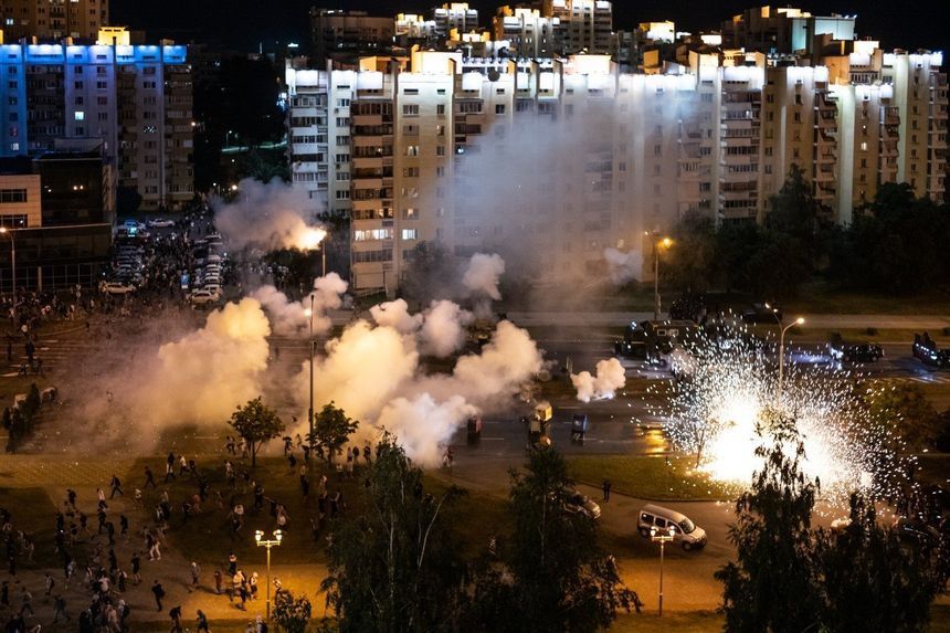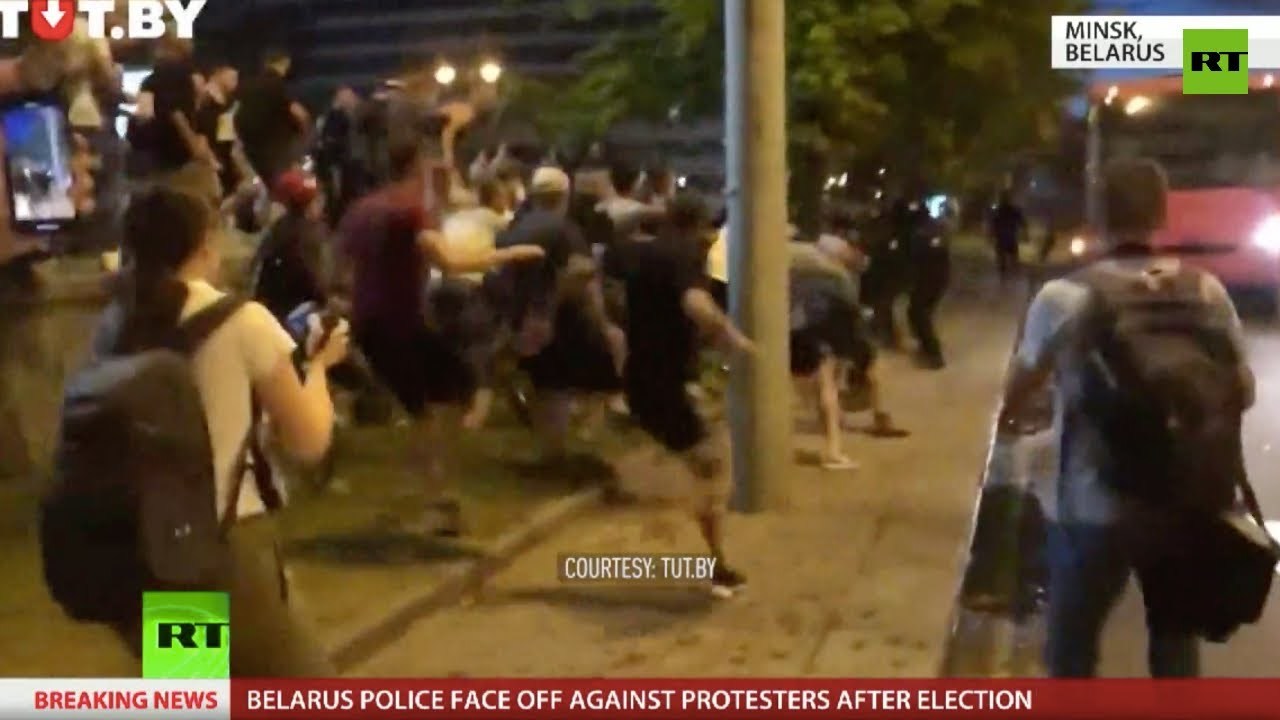 با بسته شدن مراکز رای گیری و اعلام پیروزی «الکساندر لوکاشنکو»‌، معترضان به نتایج انتخابات در میدان «پیروزی» شهر مینسک با نیروهای پلیس ویژه درگیر شدند.