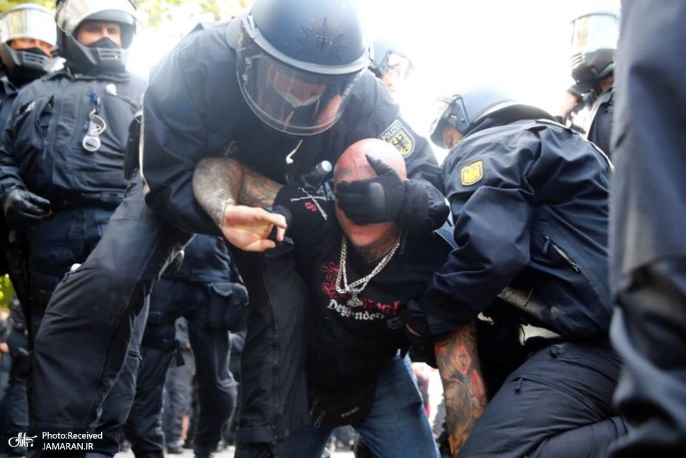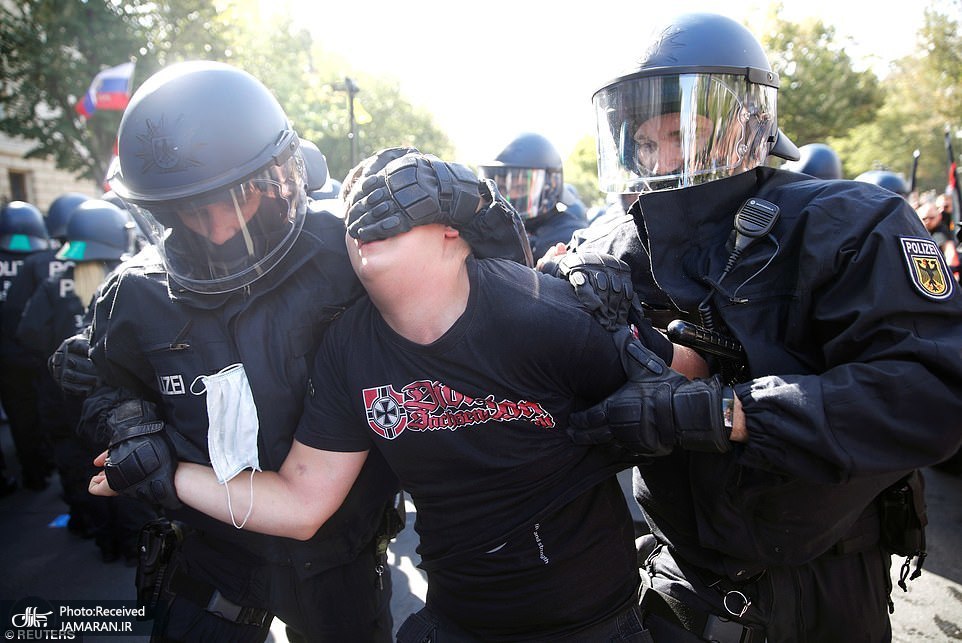 در حالی که به تخمین پلیس، حدود 18 هزار نفر برای اعتراض به مقررات دولتی مبنی بر اجباری بودن پوشاندن صورت با ماسک در معابر عمومی و دیگر محدودیت های اجتماعی در مرکز برلین جمع شده بودند، نیروهای پلیس به دلیل عدم رعایت فاصله گذاری اجتماعی مانع راهپیمایی معترضان شدند.